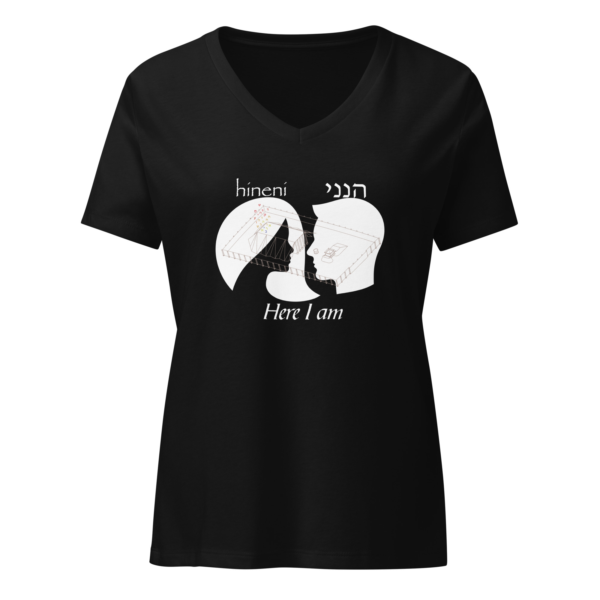 Here I am “Hineni” Women’s relaxed v-neck t-shirt