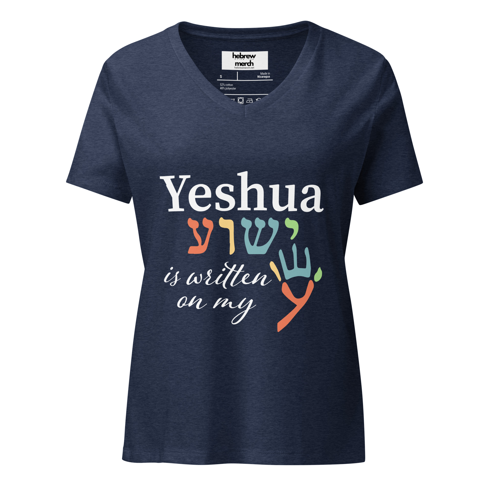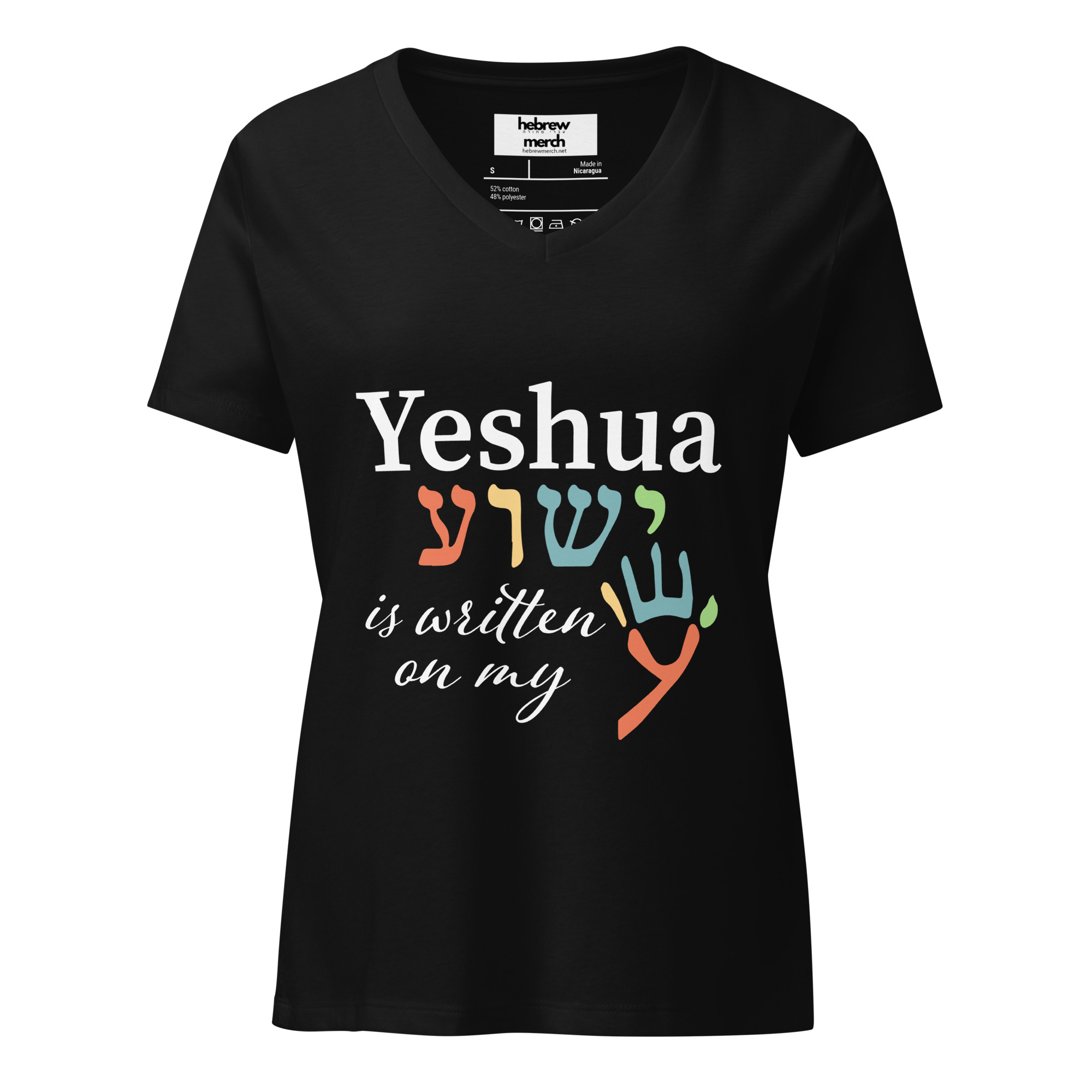 Yeshua is Written on My Hand Women’s relaxed v-neck t-shirt
